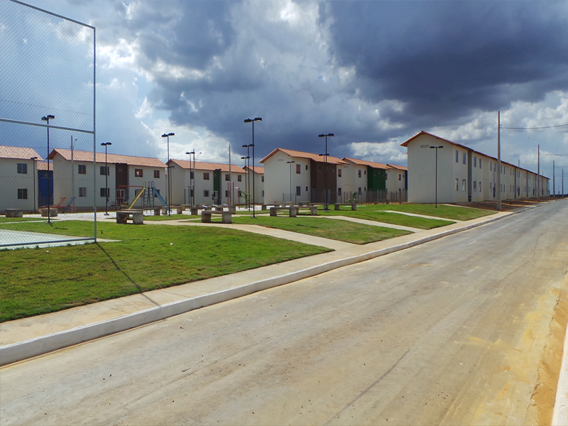 Cada unidade com 39 m2, incluindo saneamento básico, sistema de captação, tratamento e distribuição de água e esgoto, inclusive pavimentação asfáltica.